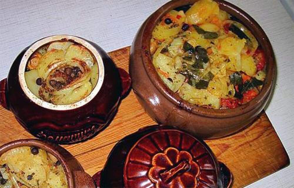 Мясо (свинина, телятина) слегка обжариваете и выкладываете на дно горшочка. Сверху — слой маринованного лука (на литр кипятка 2 столовые ложки соли с горкой и одна сахарного... Далее