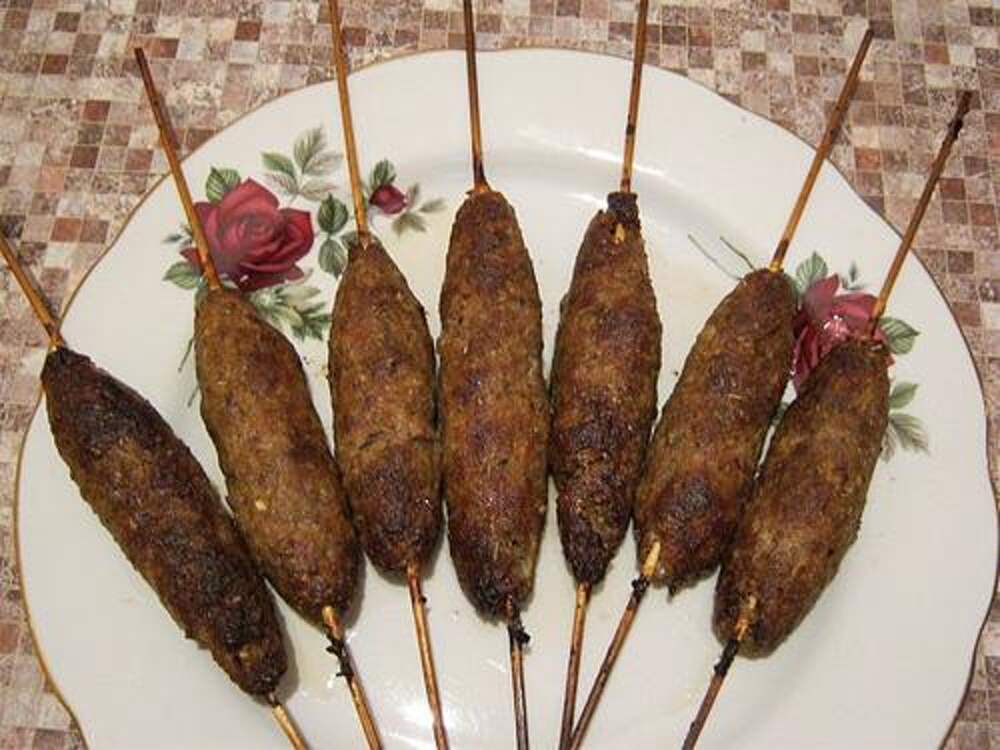 Свинина (или телятина), маринованный лук, морковь, соль, сахар, шампиньоны, картофель, толченый чеснок